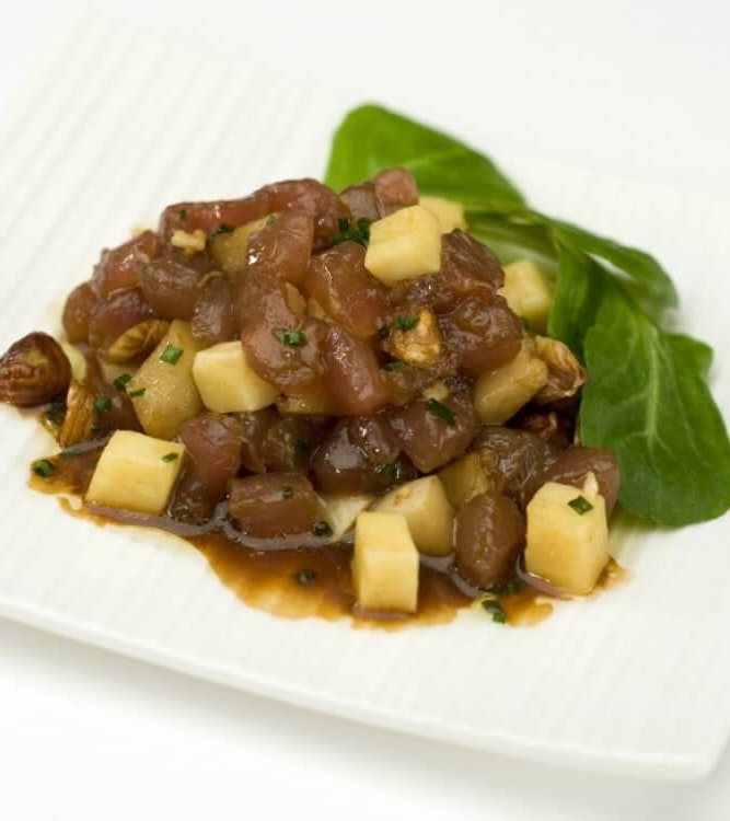 Tartare de thon et poires asiatiques au Cheddar Île-aux-Grues