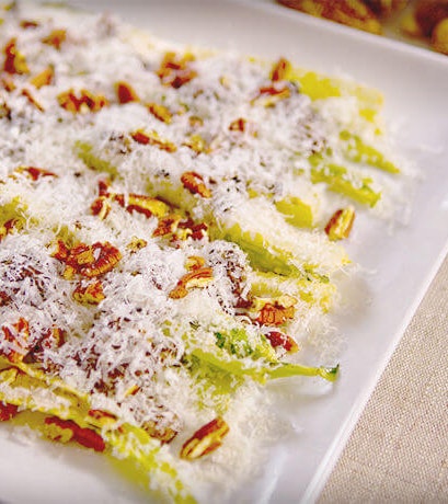 Tiges de romaine, mayonnaise au chipotle, morilles et Parmesan d’ici