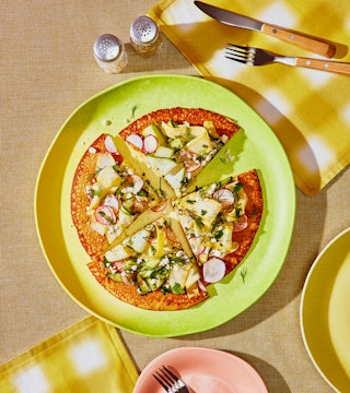 La recette de socca, sans la salade de zucchinis et la vinaigrette, peut aussi servir à faire une pizza sans gluten. Une fois la socca cuite, la recouvrir des garnitures de son choix et passer la poêle sous le gril pendant deux minutes ou jusqu’à ce que le fromage soit gratiné.