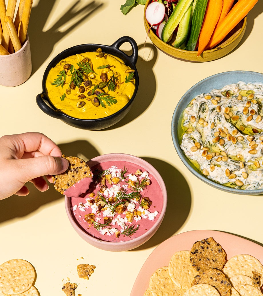 On peut manger ces trempettes avec des croustilles de pita, du pain grillé, des gressins et des crudités, au goût. Elles peuvent aussi accompagner les viandes grillées. Chacune des trois recettes de trempette donne au moins 6 portions de 80 ml (1/3 tasse).