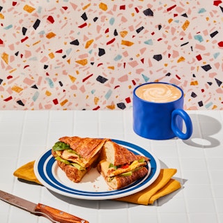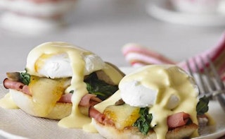 Rosette de prosciutto sur latkas de pommes de terre et fromage Le Curé Labelle