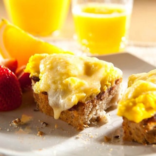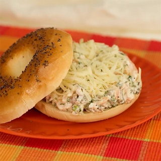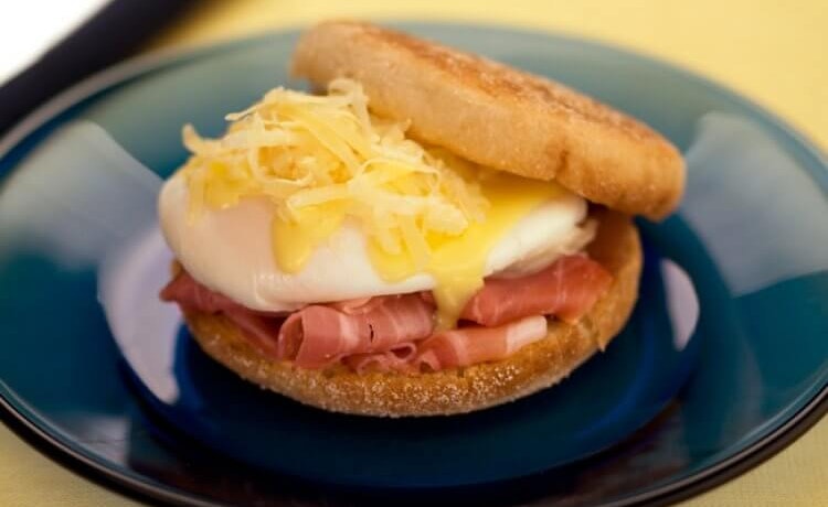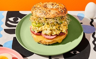 Sandwich bagel aux œufs, au saucisson et au fromage