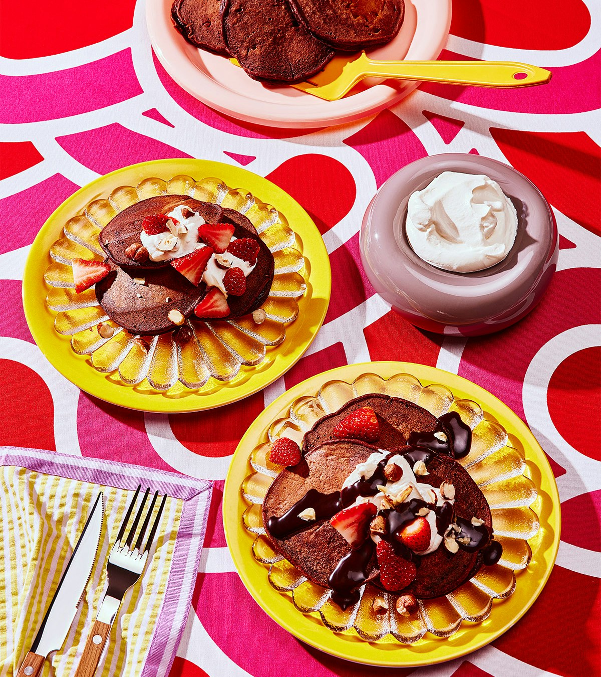 Par ici la recette facile de pancakes au chocolat avec des pépites. Un plat moelleux et gourmand parfait pour vos déjeuners entre amis ou en famille!