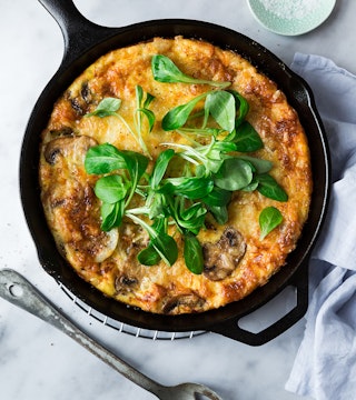 Servir la frittata accompagnée de salade de mâche ou de cresson, ou d’une salade verte!
