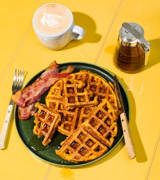 Accompagnements suggérés : bacon fumé (option végétarienne : tempeh fumé) et fruits frais.