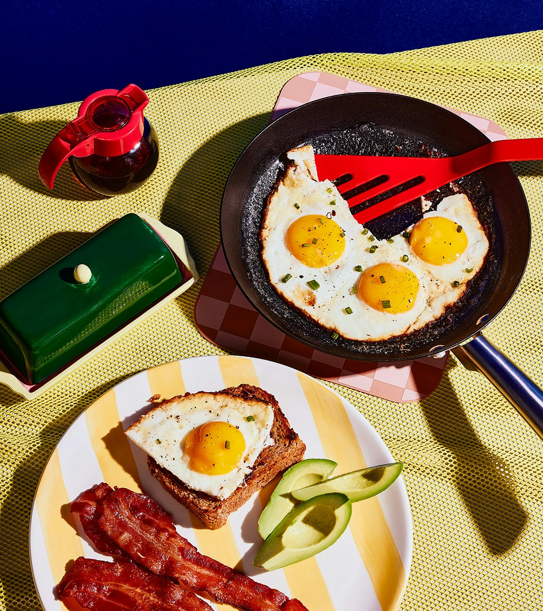 Œufs cuits à la poêle dans un peu de crème 35 %, la crème fait office de corps gras et les solides caramélisent donnant une saveur umami irrésistible