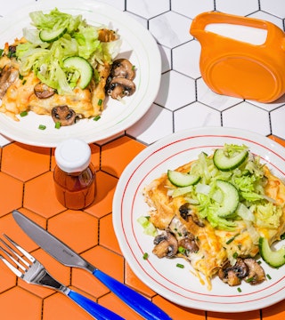 Pouding au pain, aux champignons et au fromage Saint-Paulin