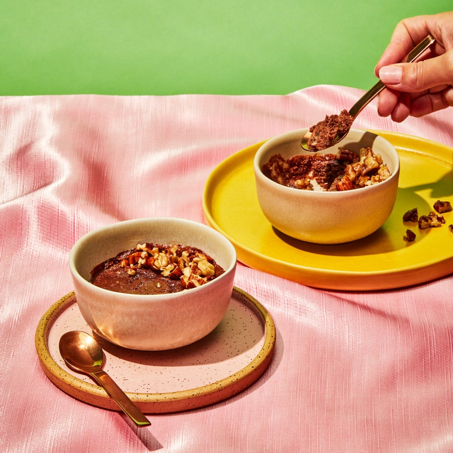 Pouding au pain d’épices, au chocolat au lait et noix hachées