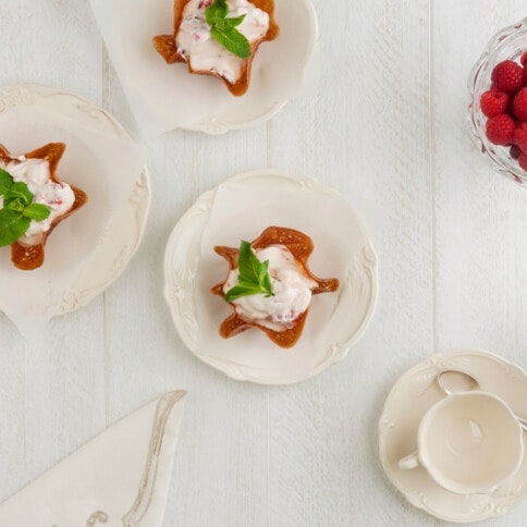Tuiles à la crème aux framboises et canneberges