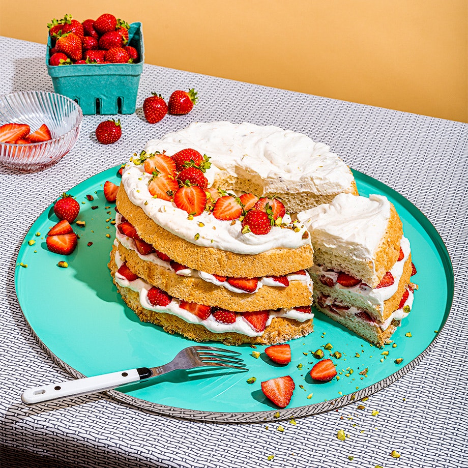 Gâteau des anges aux pistaches et aux fraises