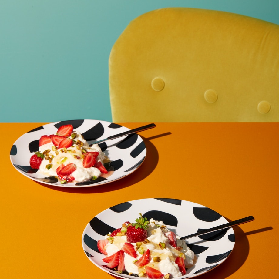 Dessert onctueux au fromage labneh, à l'eau de rose et aux fraises