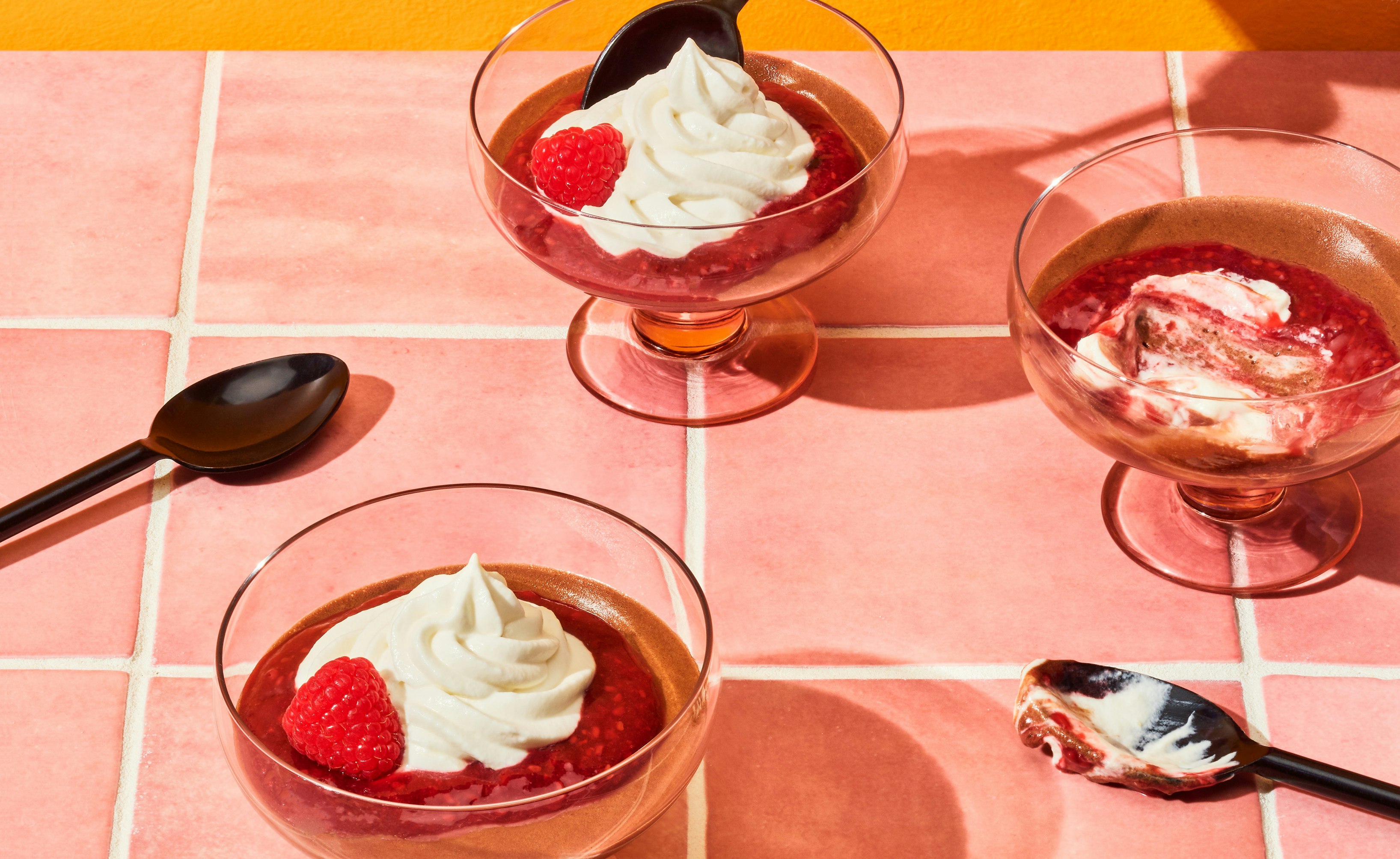 Mousse au chocolat et coulis de framboise