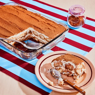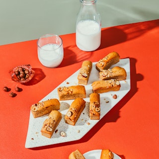 Gâteau de semoule de blé à la liqueur de fruit de la passion, nuage de chocolat de Tanzanie et crémeux au caramel