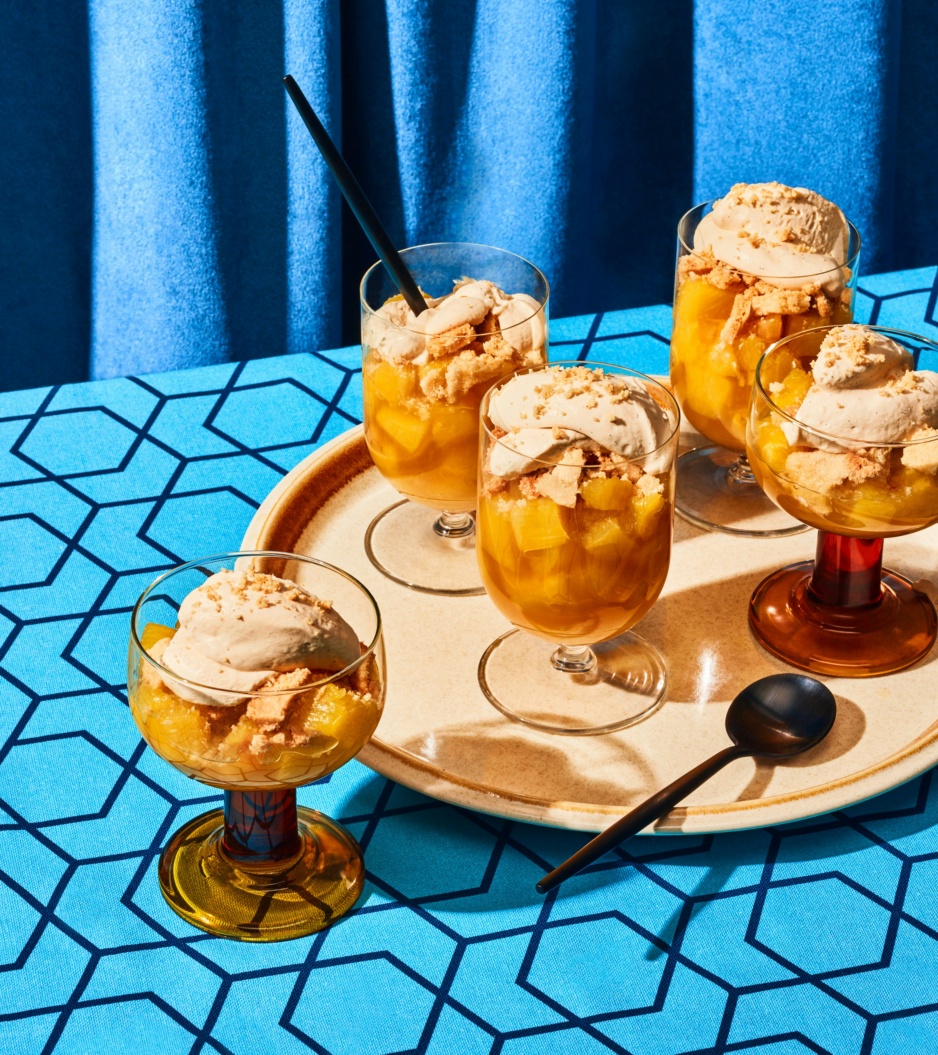 Ananas poêlés, croustillant aux amandes et crème chantilly au caramel