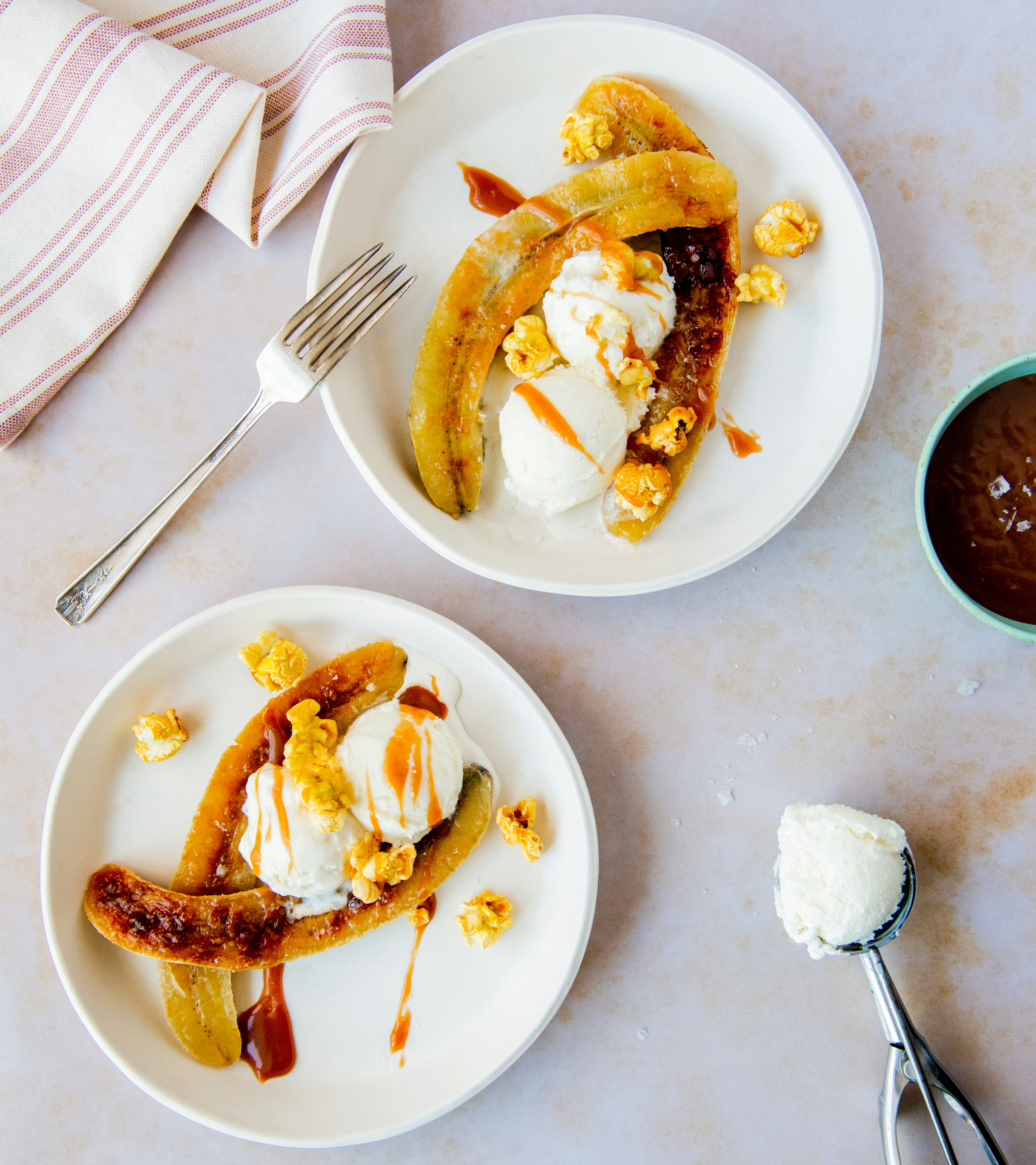 Banana split avec sauce au caramel salé