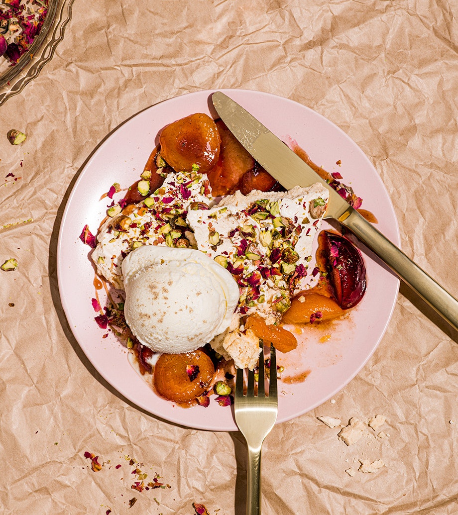 Meringue aux pistaches garnie de fruits pour St-Valentin solo