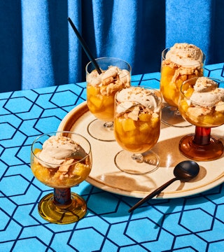 Ananas poêlés, croustillant aux amandes et crème chantilly au caramel