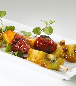 Brochettes de fruits et de cheddar d’ici grillées