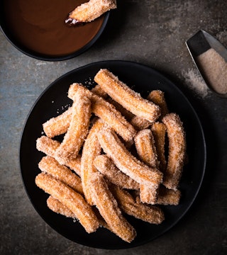 Servir les churros accompagnés d’une sauce caramel au beurre salé en remplacement de la sauce au chocolat.