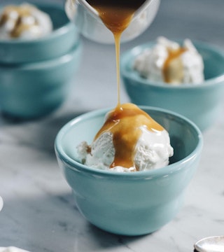 Crème glacée au brie, sauce caramel à l’érable