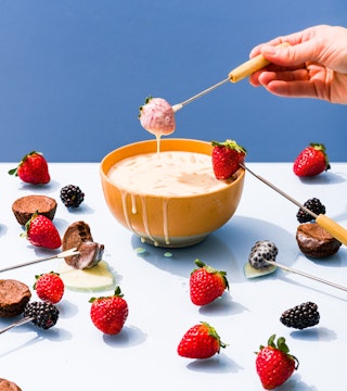 Préparer la fondue à l’avance et laisser refroidir à température ambiante pour laisser le chocolat épaissir plus.