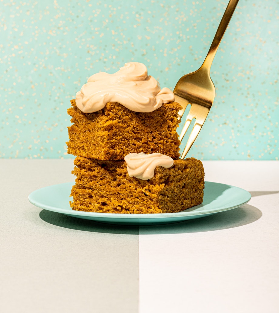 Gâteau à la citrouille et au chaï, glaçage au labneh et café