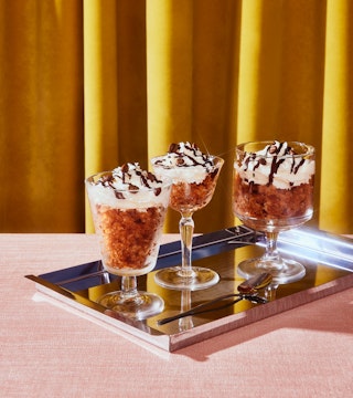 Une fois que le granité a été gratté à la fourchette quelques fois, on peut le couvrir et le conserver jusqu’à trois semaines au congélateur (sans les garnitures). Il suffit alors de le gratter de nouveau au moment de servir.