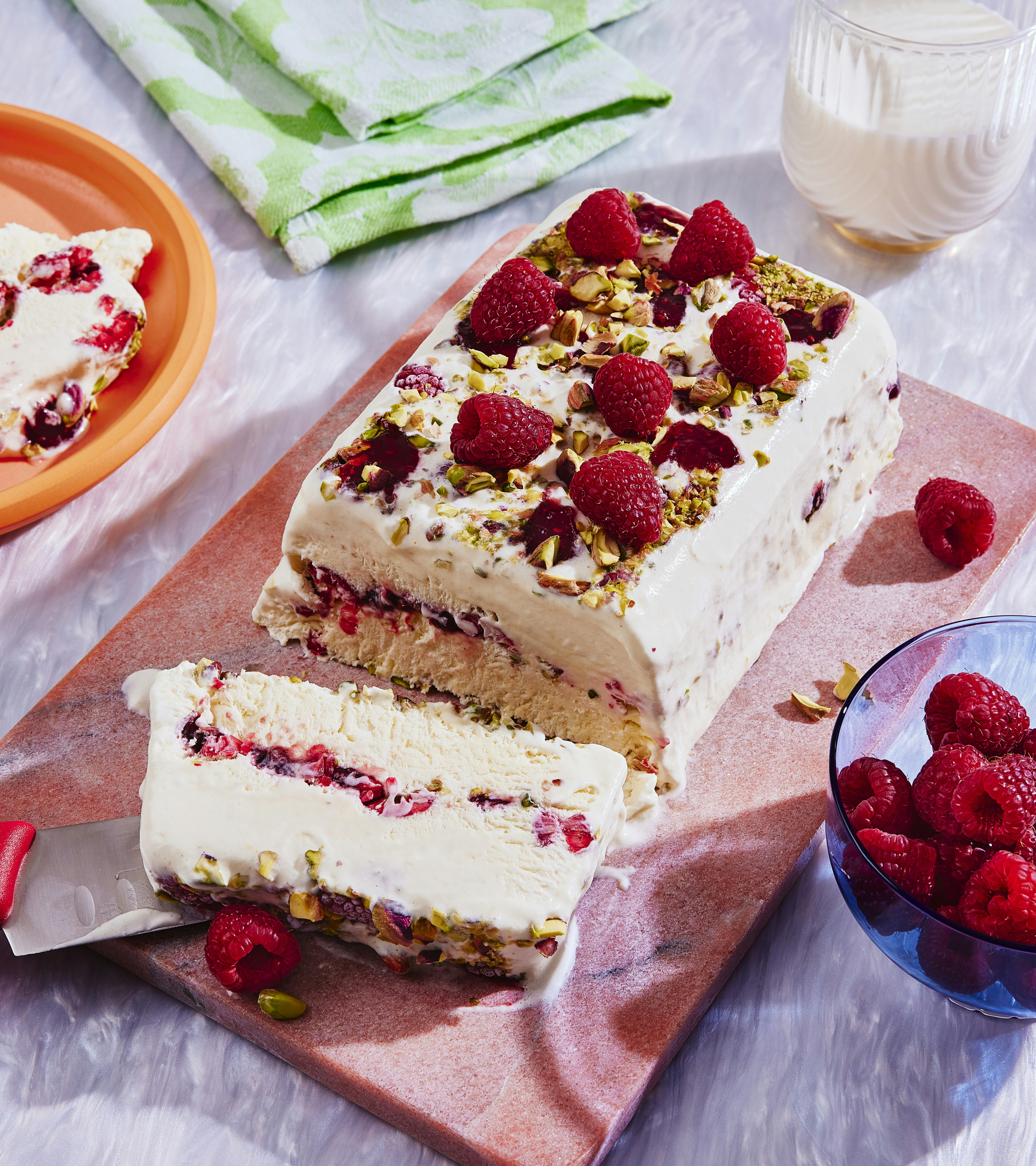 Nougat glacé aux framboises et aux pistaches
