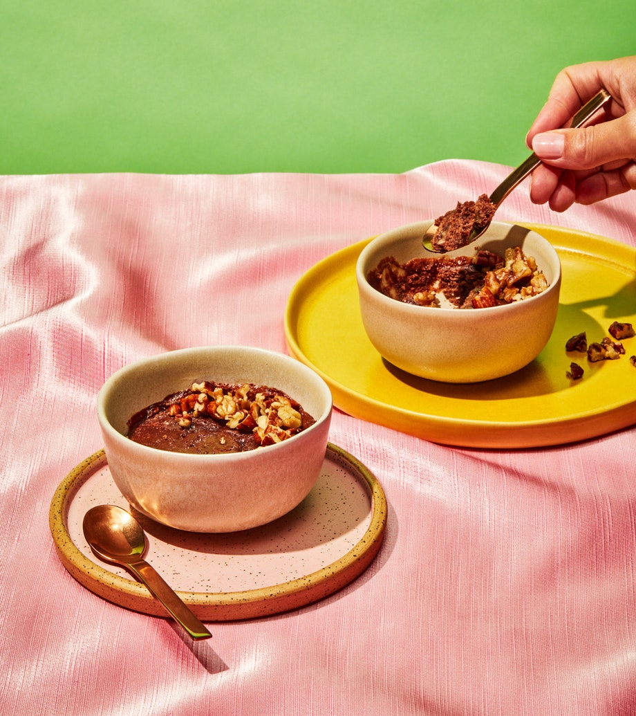 Pouding au pain d’épices, au chocolat au lait et noix hachées