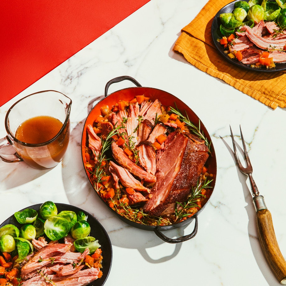 Cuisses de canard braisées aux pommes, au chou et au cidre
