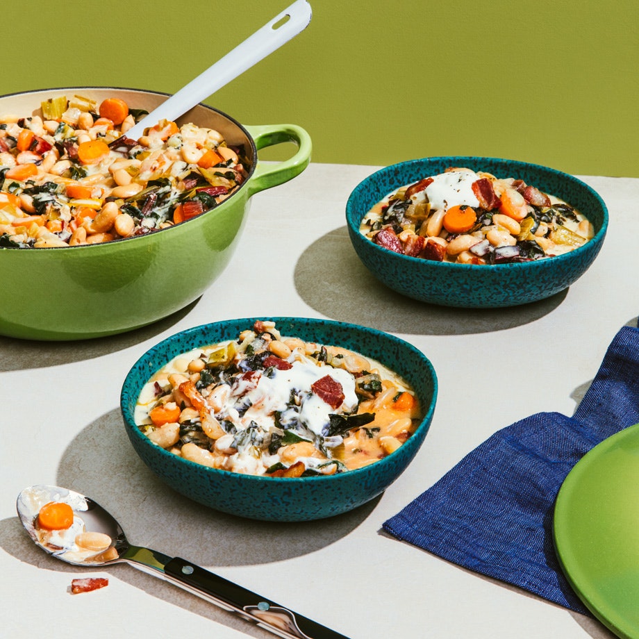 Ragoût crémeux de haricots blancs, de bette à carde et de bacon