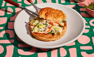 Vol-au-vent au saumon fumé, aux poireaux et aux asperges