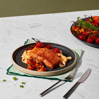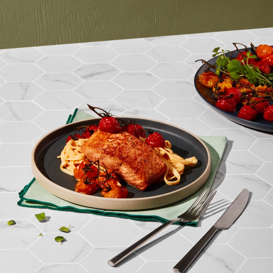 Pavés de saumon, tagliatelles sauce rosée au yogourt