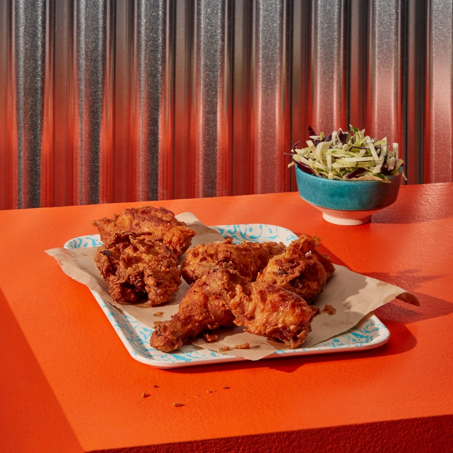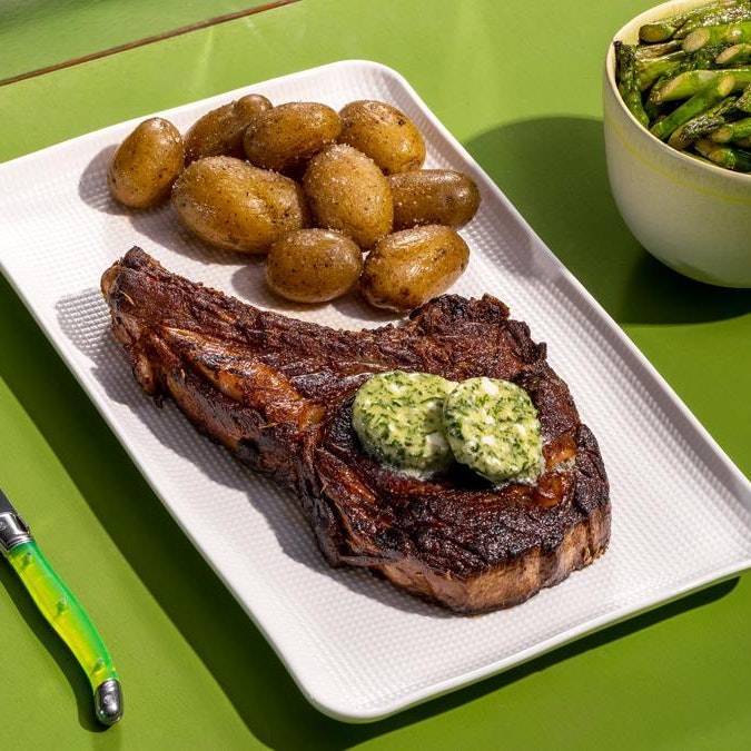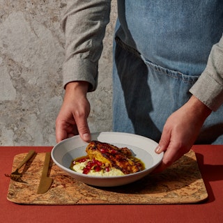 Brochettes de crevettes à l’orange et purée de pommes de terre aux petits pois