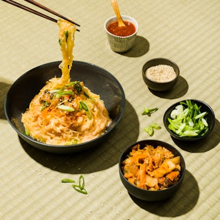 Courge spaghetti façon ramen crémeux au kimchi