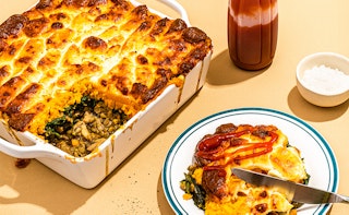 Gratin de pommes de terre aux épinards et au jambon fumé