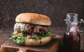 Burgers de bœuf, sauce crémeuse au fromage bleu et aux champignons portobellos