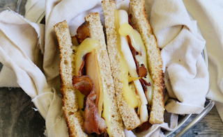 Grilled cheese à la dinde, bacon et oignons caramélisés (La Bête)