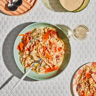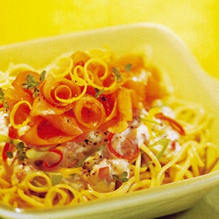 Spaghettinis à la sauce onctueuse garnis de saumon fumé