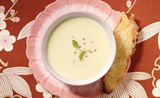 Velouté d’asperges, de laitue et de champignons