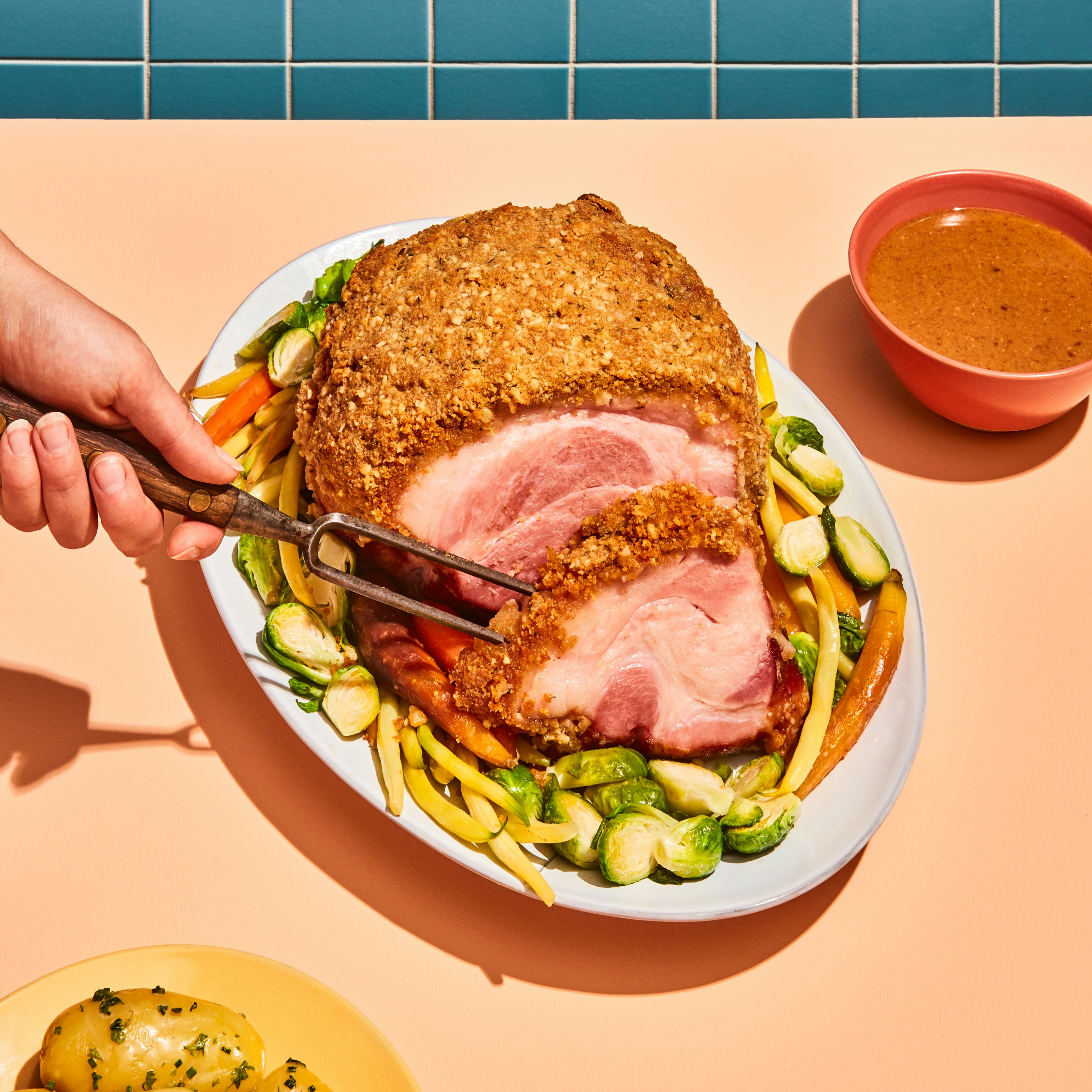 Délicieux jambon en croûte de noix de macadam