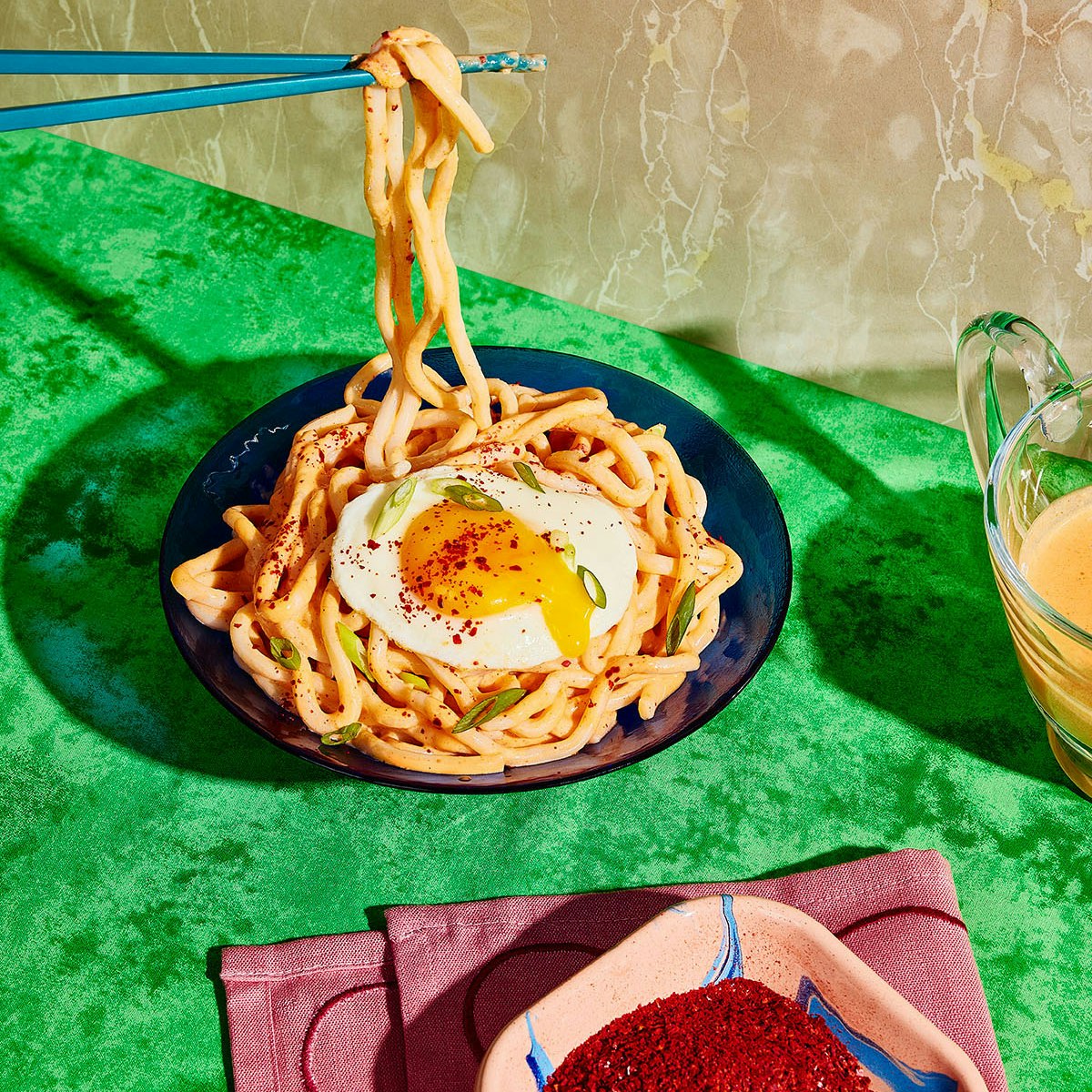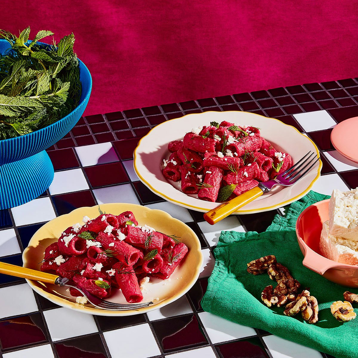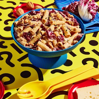 Pâtes au radicchio, sauce aux haricots blancs et aux noix de Grenoble