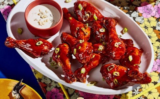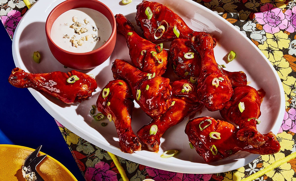 Pilons de poulet sucrés-épicés, sauce au bleu