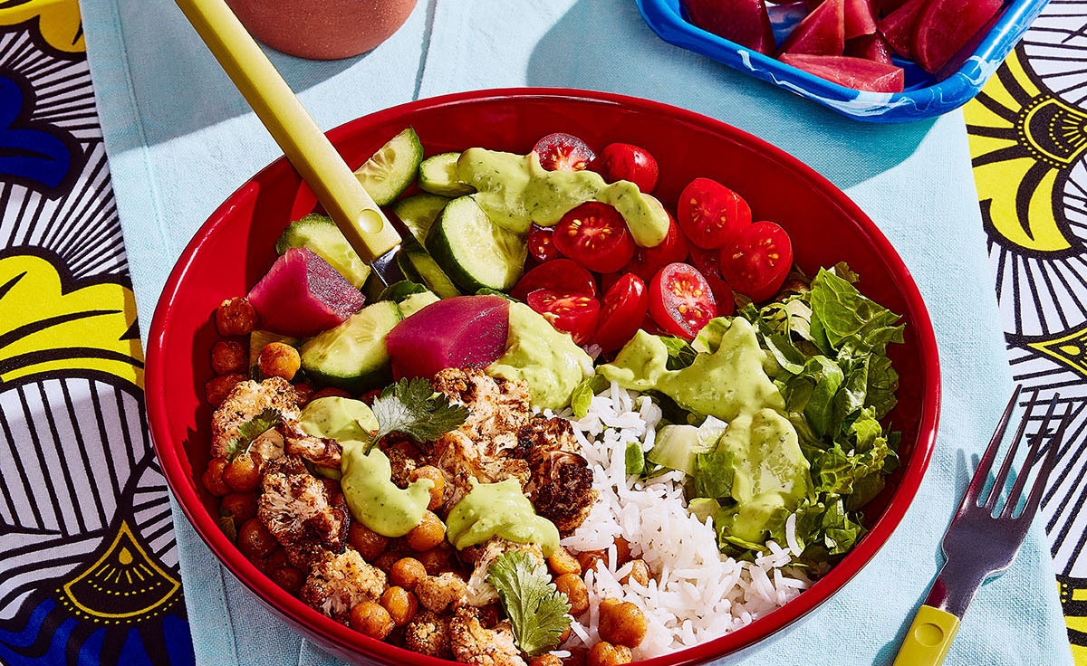 Bols-repas au chou-fleur et aux pois chiches façon shawarma