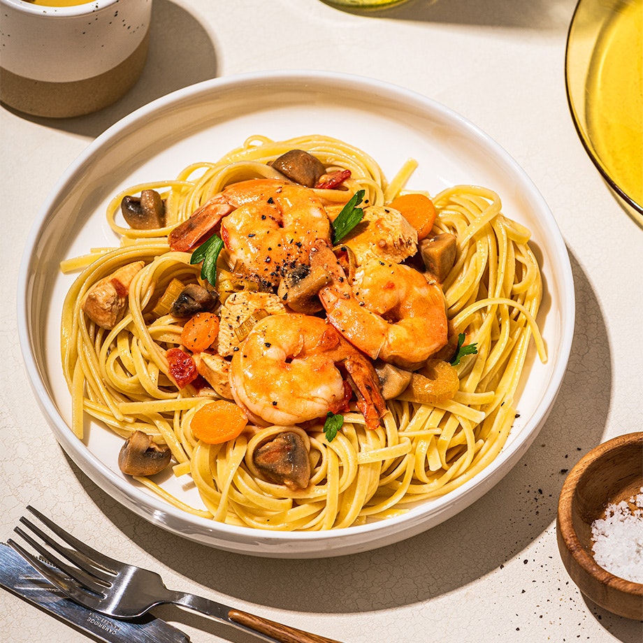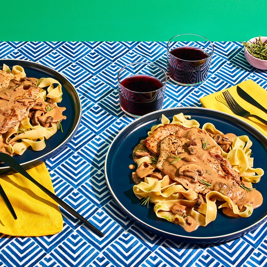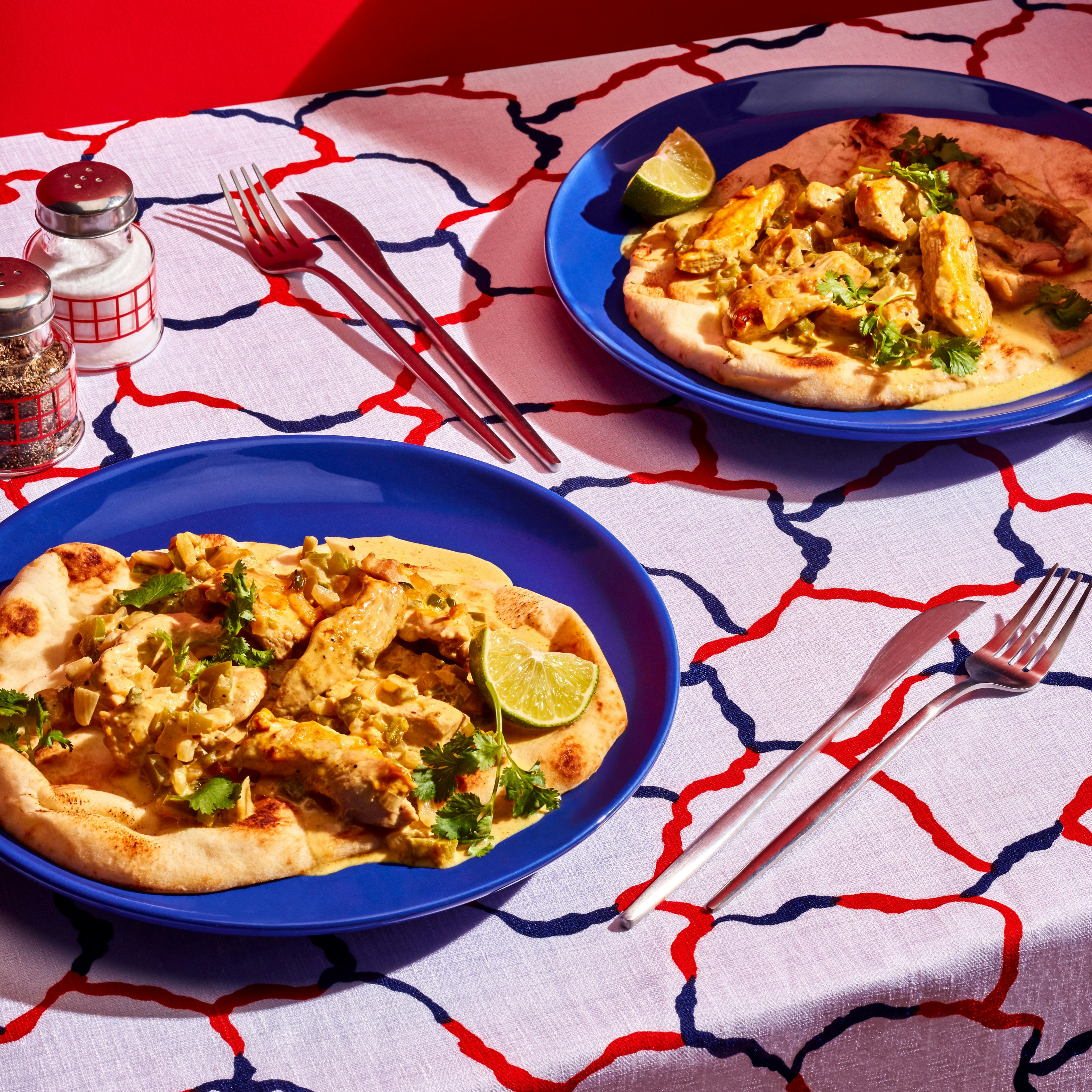 Escalopes de veau rapido, sauce cari, raisins secs et amandes