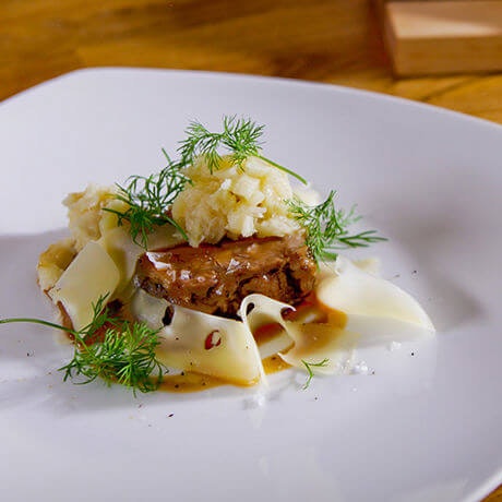 Épaule de porcelet au carvi, écrasé de panais, gouda d’ici et aneth