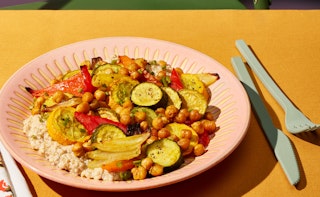 Jardinière de légumes et de pois chiches, quinoa crémeux à l’érable