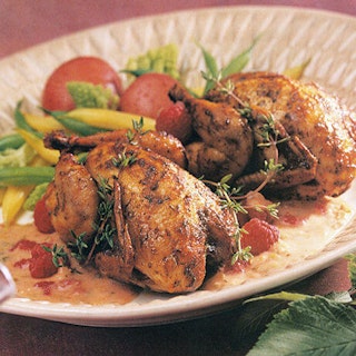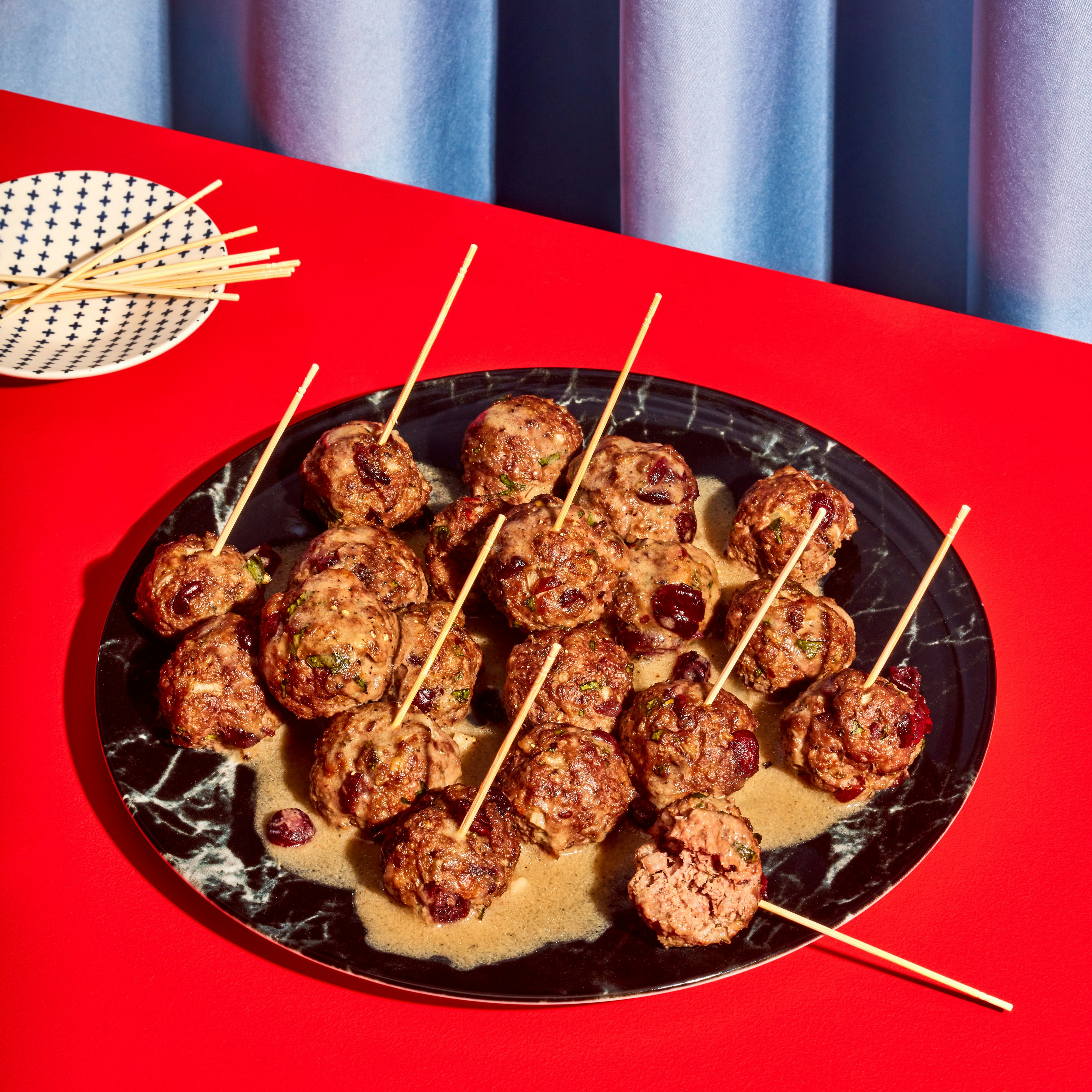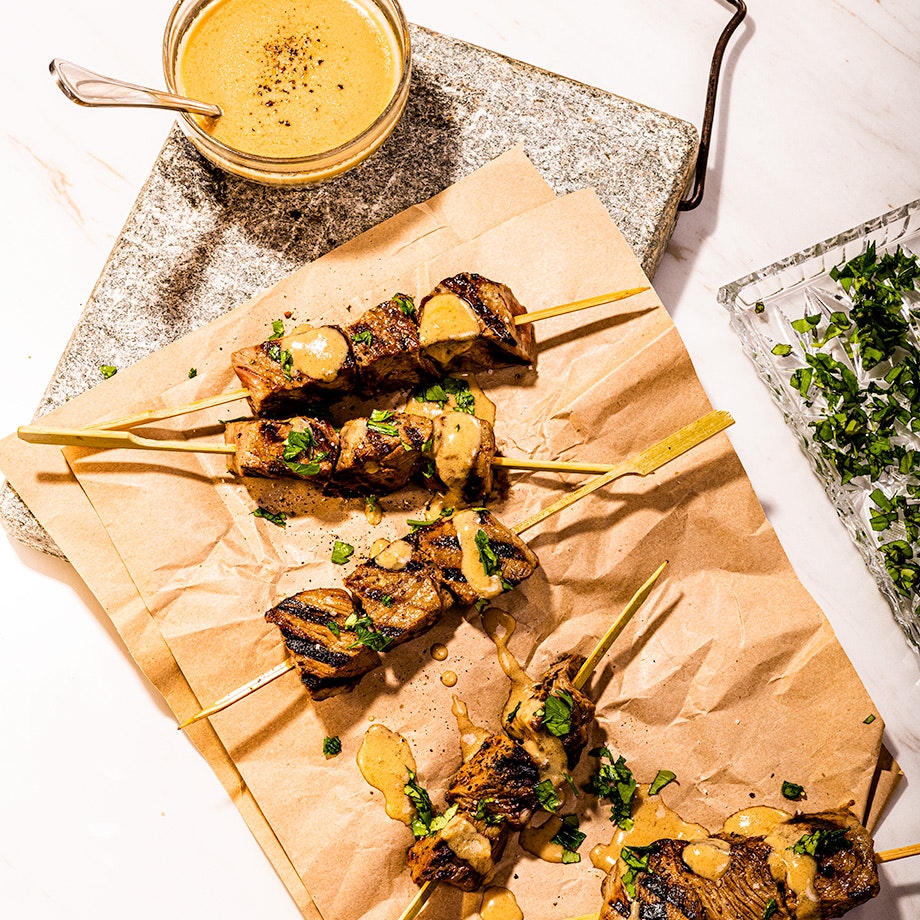 Brochettes de bœuf et de légumes, sauce crème au raifort