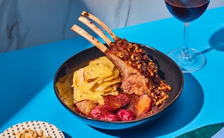 Carrés d’agneau aux noisettes, gratin de pommes de terre et de poires
