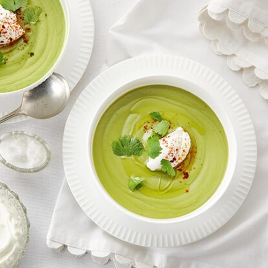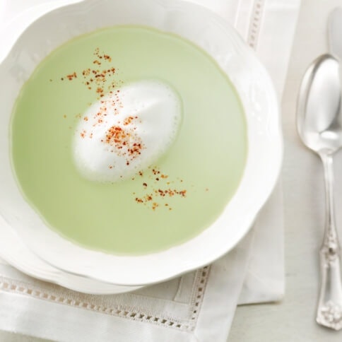 Velouté d’asperges au lait mousseux et fromage Chèvre des neiges